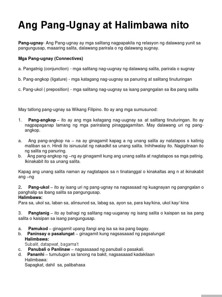 10 Halimbawa Ng Pang Ugnay Para Sa Filipino Learners